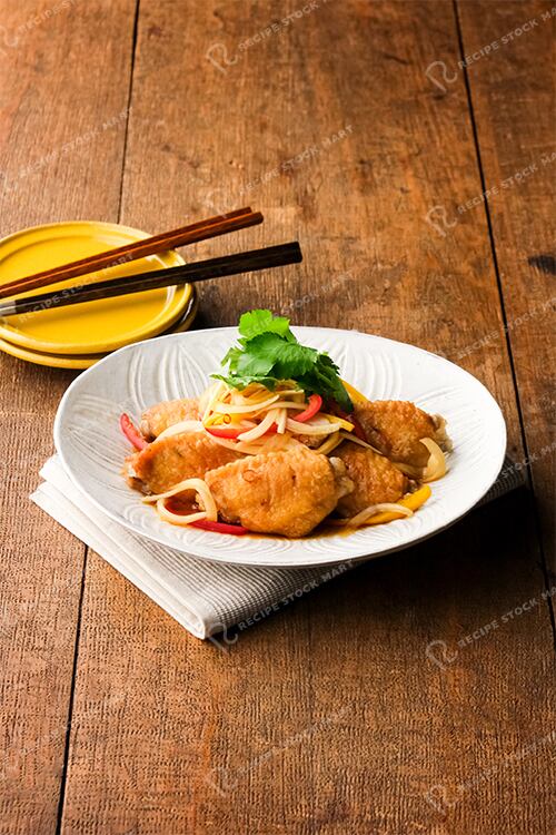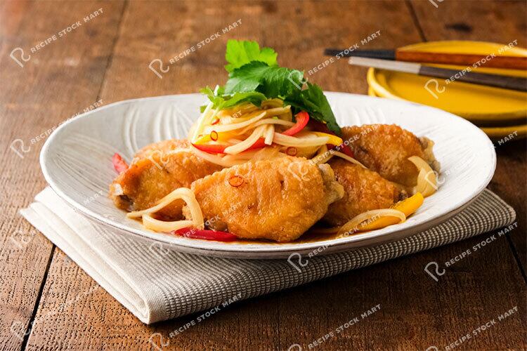 鶏肉のジューシーさと彩り豊かな野菜の爽やかさが楽しめる和風の一品です。
