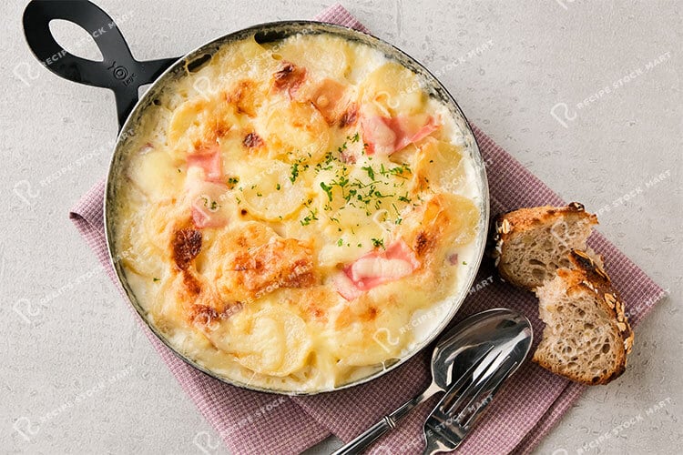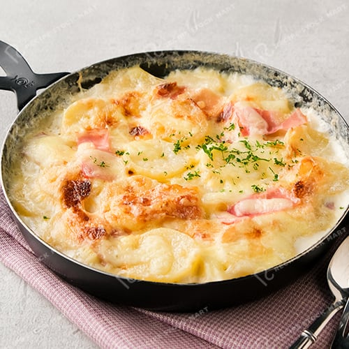クリーミーな牛乳の旨味をまとったほくほくのじゃがいもに、チーズの香ばしい焼き色が食欲をそそる一品です。